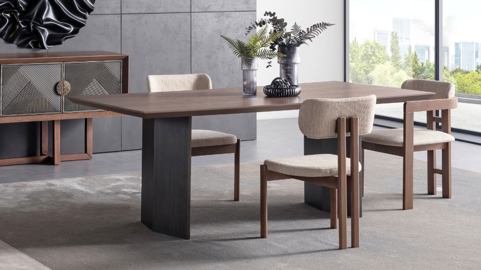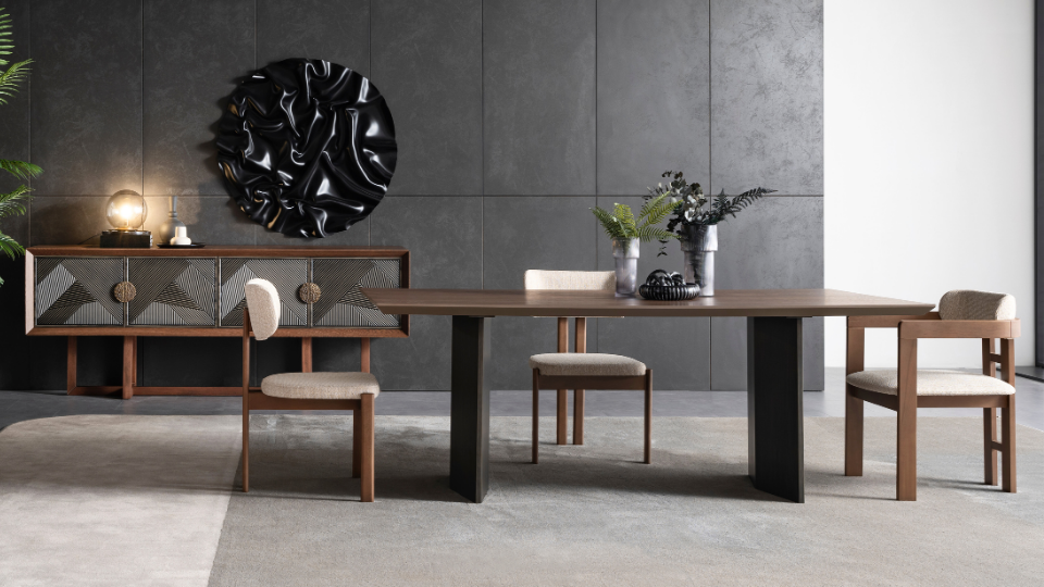 Designed for modern living spaces, the Liora (Brown) dining room set combines elegance and functionality with its dining table, buffet, and chairs. The solid wood structure and premium materials ensure durability, while the ergonomic chairs provide maximum comfort for long dining sessions. The buffet offers smart storage solutions, keeping your dining room both organized and stylish.